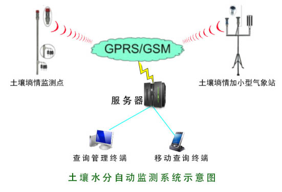 土壤墒情自动监测系统基于GPRS系列无线传输数据采集终端,根据具体需求配置连接土壤水分传感器、土壤温度传感器、雨量传感器等;系统采用GPRS网络采集传输模式。特别适合大范围的多点土壤水分监测项目,如全省范围内的生态站土壤墒情监测,长带状如河道、公路路基等土壤水分动态监测,山体滑坡土壤水分监测预警等。对于小范围的试验小区,农田的土壤水分监测,更是可以灵活应用。