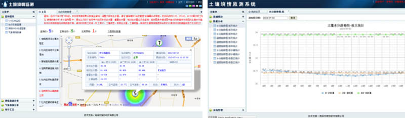 通过分配的用户名及密码登录进管理平台系统,系统主要功能包括基础信息和数据分析两部分。其中基础信息又包括站点信息管理、设备信息管理、墒情数据查询编辑、GIS实时监控、墒情评价指标体系管理;数据分析包括水分趋势图(按天、月、年统计分析)、温度趋势图(按天、月、年统计分析)、降雨量统计图(按天、月、年统计)、空气温湿度趋势图(按天、月、年统计分析)、风速风向统计图及墒情数据统计汇总表等。