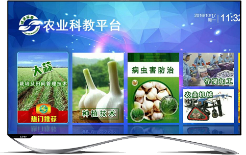 通过智能电视端,用户可分类对农业相关技术视频和宣传视频进行点播,也可以实时观看农业专家正在进行的培训讲座。在观看专家培训直播进也可通过手机APP与培训专家进行互动交流。